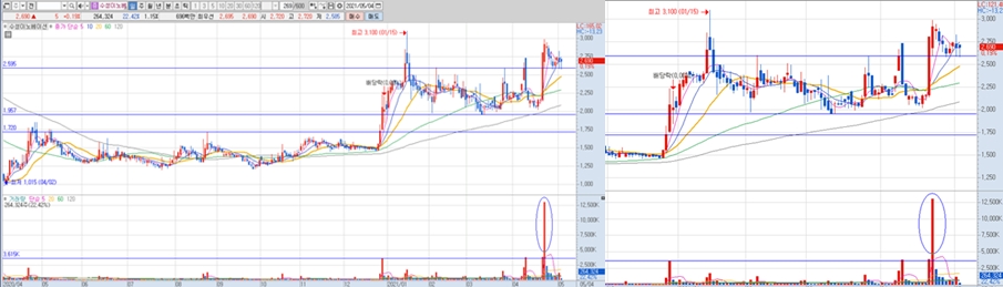 제가 말씀드리는 취지는 종목추천이 아니며, 이와 같은 움직임을 갖고 있는 종목을 고르는 것이 확률을 높일 수 있다는 보기를 좀 더 이해하기 쉽고 신뢰감을 주기 위해 거론했음을 참고해 주시기 바랍니다.